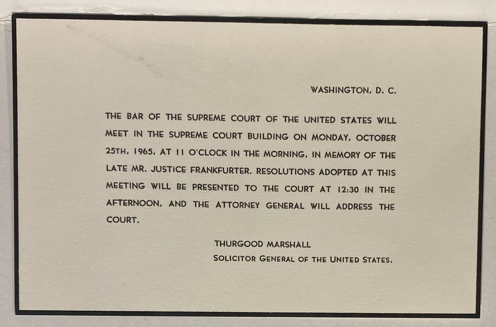 Marshall thanks Wiener “for agreeing to serve on the Resolutions Committee for the meeting of the Bar in memory of Mr. Justice Frankfurter.”